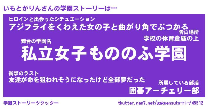 | 男性向けラノベタイトル風あだ名 | 『イモトカリンアートオンライン』 |