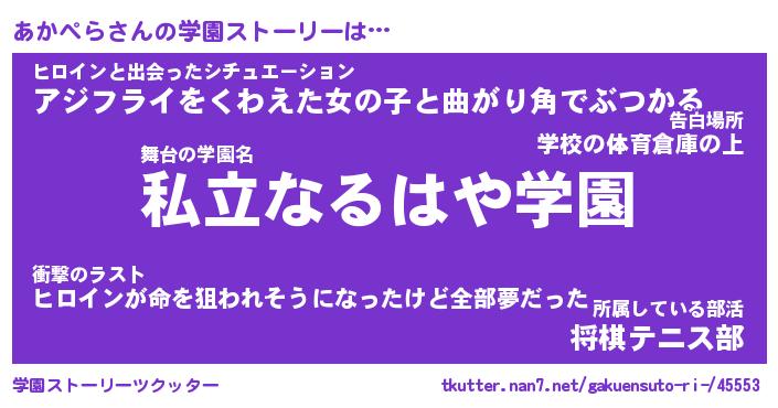 | 女子向けラノベタイトル風あだ名 | 『(仮)あかぺらのやんごとなき事情』 |
