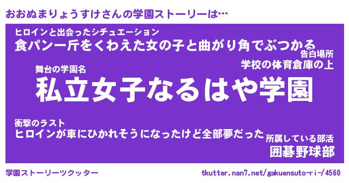 | 女子向けラノベタイトル風あだ名 | 『誰かこのおおぬまりょうすけを説明してください! ~契約から始まるウェディング~』 |
