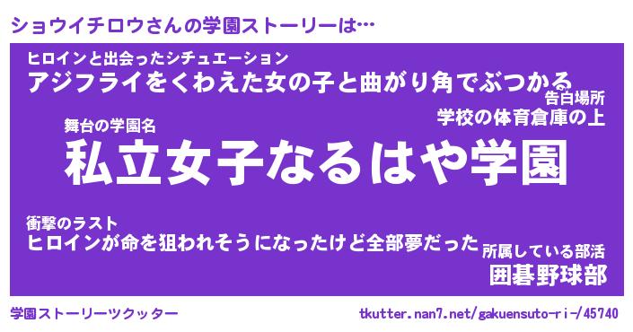 | 女子向けラノベタイトル風あだ名 | 『誰かこのショウイチロウを説明してください! ~契約から始まるウェディング~』 |