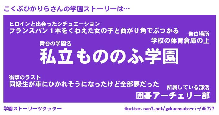 | 男性向けラノベタイトル風あだ名 | 『こくぶひかりらの憂鬱』 |