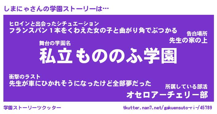 | 男性向けラノベタイトル風あだ名 | 『しまにゃの憂鬱』 |