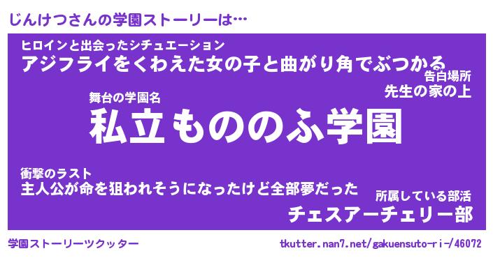 | 男性向けラノベタイトル風あだ名 | 『じんけつの憂鬱』 |