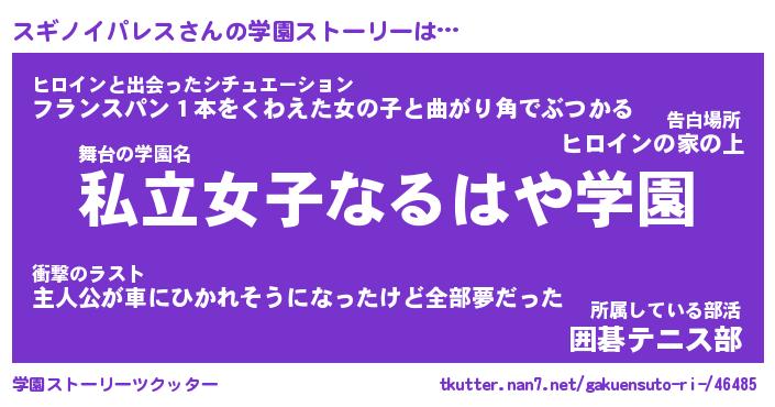 | 女子向けラノベタイトル風あだ名 | 『誰かこのスギノイパレスを説明してください! ~契約から始まるウェディング~』 |