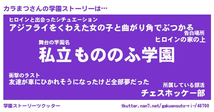 | 女子向けラノベタイトル風あだ名 | 『(仮)カラまつのやんごとなき事情』 |