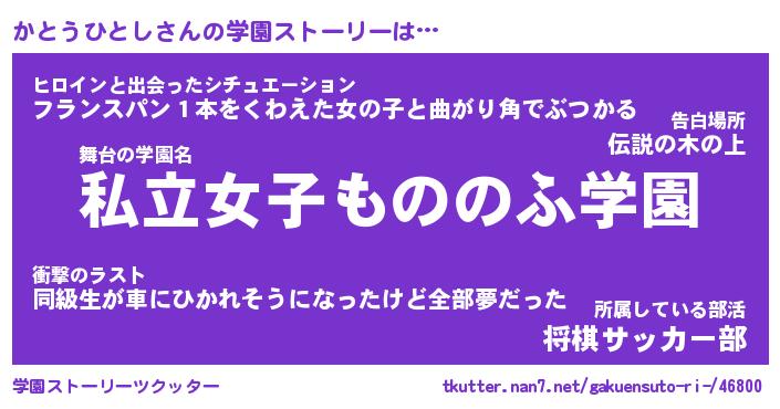 | 女子向けラノベタイトル風あだ名 | 『かとうひとし姫と円卓の騎士』 |
