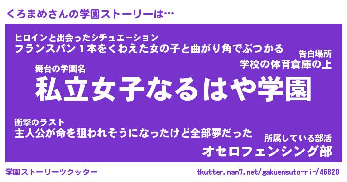 | 意味不明あだ名 | 『ペロリンくろまめ』『永久保存くろまめ』 |