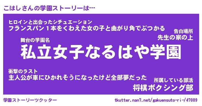 | 男性向けラノベタイトル風あだ名 | 『コハシアートオンライン』 |