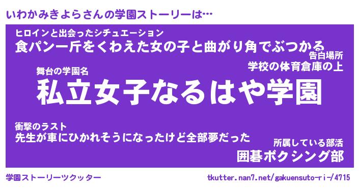 | ツイッター | いわかみきよらさんのツイッターID『namakemono_kun』 |