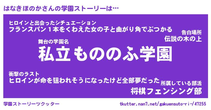| ヒーロー風カッコイイあだ名 | 『スーパーハナキホノカ』『魔戒騎士ハナ』 |