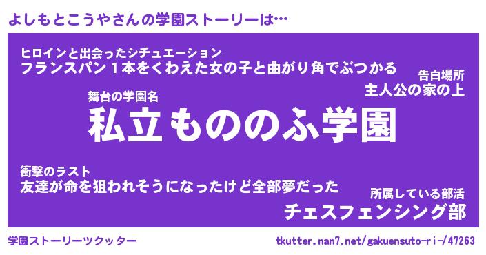 | 男性向けラノベタイトル風あだ名 | 『よしもとこうやの憂鬱』 |