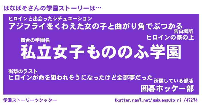 | ファンタジー風あだ名 | 『ハナフェル』『エターナルハナパソー』 |