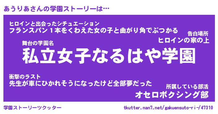 | 告白場所 先生の家の上 …「ふぃぎゅこ」 | 2月17日 06:24 |