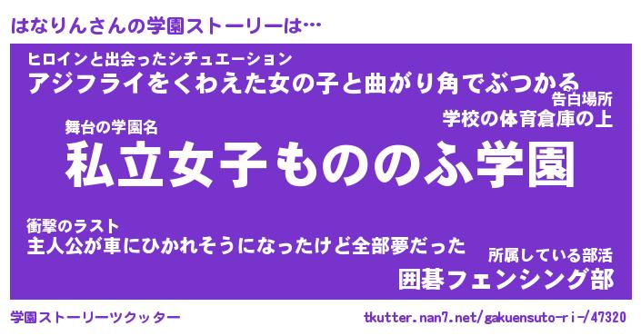 | 男性向けラノベタイトル風あだ名 | 『ハナリンアートオンライン』 |