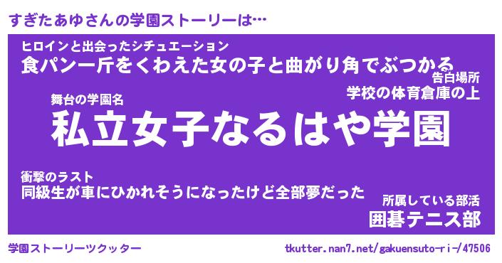 | 女子向けラノベタイトル風あだ名 | 『すぎたあゆ姫と円卓の騎士』 |