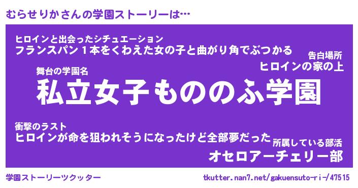| 伝説のあだ名 | 『封印されし竜騎士むらせりか』 |