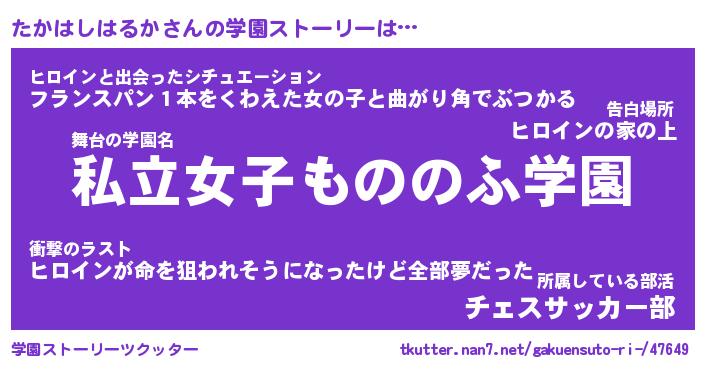 | 男性向けラノベタイトル風あだ名 | 『タカハシハルカアートオンライン』 |