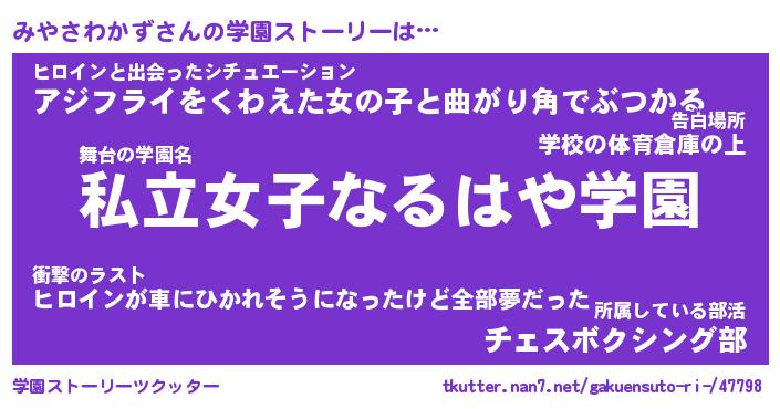 | 女子向けラノベタイトル風あだ名 | 『誰かこのみやさわかずを説明してください! ~契約から始まるウェディング~』 |