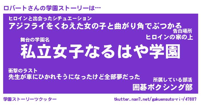 | 男性向けラノベタイトル風あだ名 | 『ロバートアートオンライン』 |