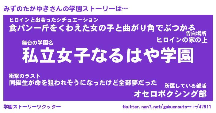 | 肩書あだ名 | 『みずのたかゆき御曹司』 |