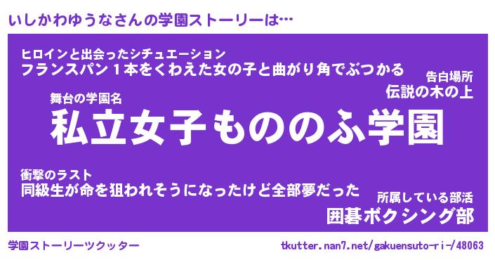 | 女子向けラノベタイトル風あだ名 | 『誰かこのいしかわゆうなを説明してください! ~契約から始まるウェディング~』 |