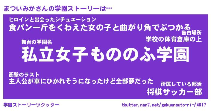 | 女子向けラノベタイトル風あだ名 | 『誰かこのまついみかを説明してください! ~契約から始まるウェディング~』 |