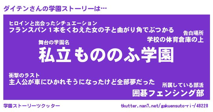 | 男性向けラノベタイトル風あだ名 | 『ダイテンの憂鬱』 |