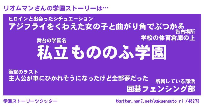 | 女子向けラノベタイトル風あだ名 | 『(仮)リオムマンのやんごとなき事情』 |