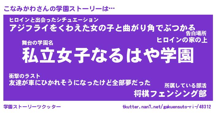 | 女子向けラノベタイトル風あだ名 | 『こなみかわ姫と円卓の騎士』 |