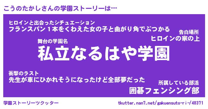 | 告白場所 先生の家の上 …「ふぃぎゅこ」 | 2月17日 06:24 |