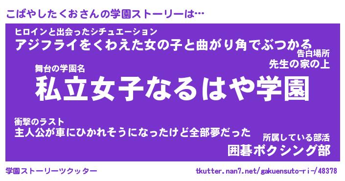 | 伝説のあだ名 | 『封印されしスナイパーこばやしたくお』 |