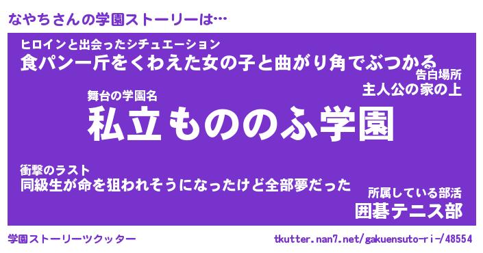 | 男性向けラノベタイトル風あだ名 | 『なやちの憂鬱』 |