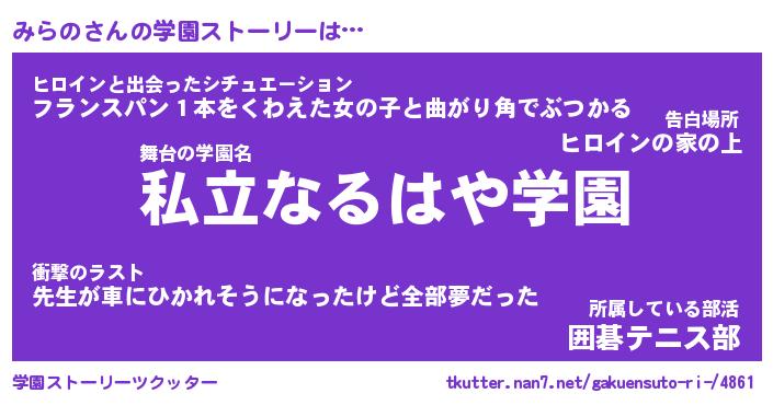 | 告白場所 先生の家の上 …「ふぃぎゅこ」 | 2月17日 06:24 |