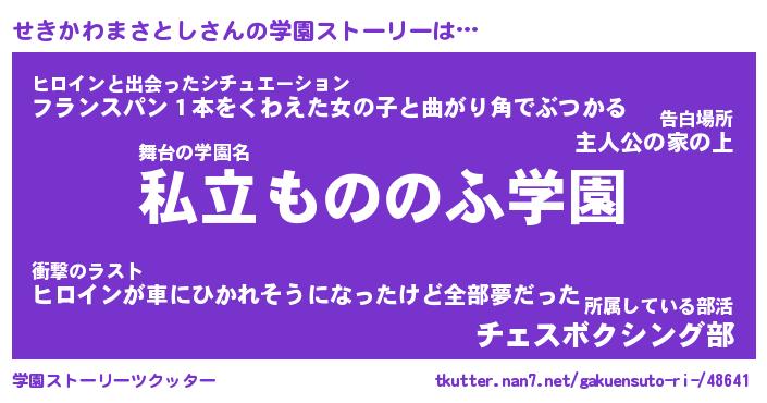 | 男性向けラノベタイトル風あだ名 | 『せきかわまさとしの憂鬱』 |