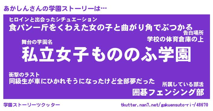| 意味不明あだ名 | 『ペロリンあかしん』『永久保存あかしん』 |