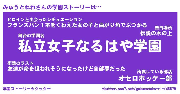 | 男性向けラノベタイトル風あだ名 | 『ミュウトネネアートオンライン』 |