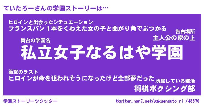 | 女子向けラノベタイトル風あだ名 | 『ていたろー姫と円卓の騎士』 |