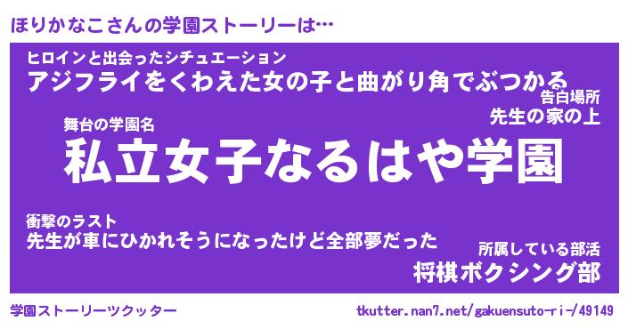 | 肩書あだ名 | 『ほりかなこ社長令嬢』『ほりかなこ班長』 |