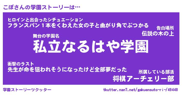| 男性向けラノベタイトル風あだ名 | 『こぼの憂鬱』『ノーゲーム・ノーコボ』 |