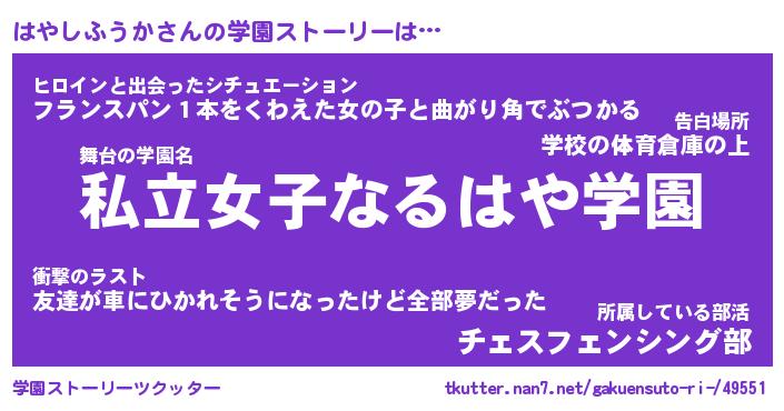 | 伝説のあだ名 | 『不死鳥のスナイパーはやしふうか』 |