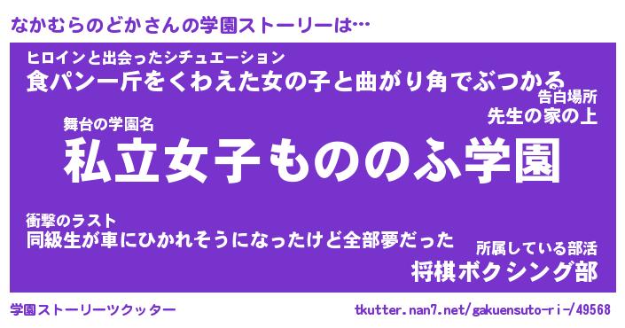 | 女子向けラノベタイトル風あだ名 | 『なかむらのどか姫と円卓の騎士』 |