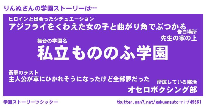 | 男性向けラノベタイトル風あだ名 | 『りんぬの憂鬱』 |