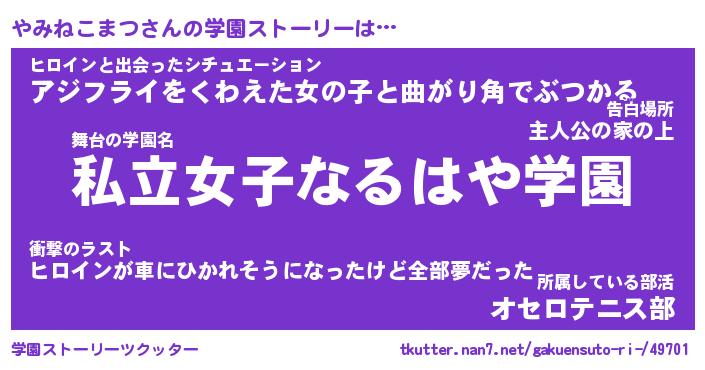 | 肩書あだ名 | 『やみねこまつ社長令嬢』 |