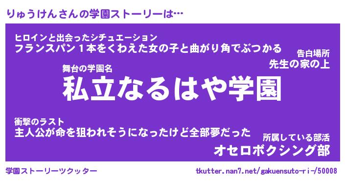 | 男性向けラノベタイトル風あだ名 | 『りゅうけんの憂鬱』 |