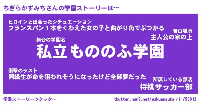 | 男性向けラノベタイトル風あだ名 | 『ちぎらかずみちの憂鬱』 |