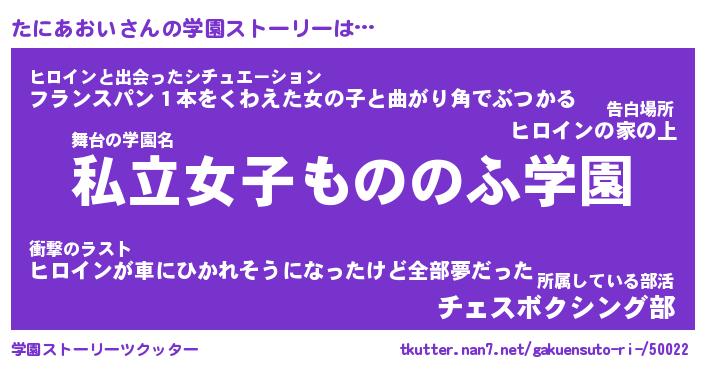 | 女子向けラノベタイトル風あだ名 | 『誰かこのたにあおいを説明してください! ~契約から始まるウェディング~』 |