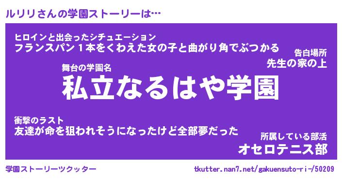 | 女子向けラノベタイトル風あだ名 | 『ルリリ姫と円卓の騎士』 |