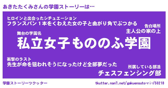 | 女子向けラノベタイトル風あだ名 | 『あきたたくみ姫と円卓の騎士』 |