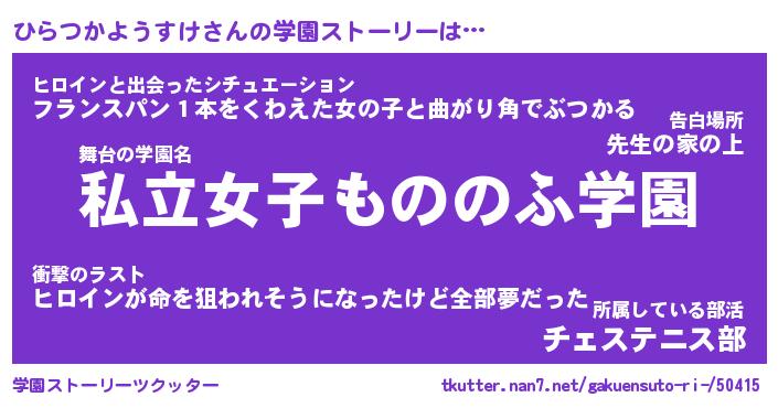 | 女子向けラノベタイトル風あだ名 | 『誰かこのひらつかようすけを説明してください! ~契約から始まるウェディング~』 |