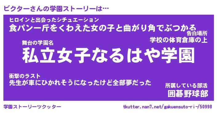 | 意味不明あだ名 | 『ペロリンビクター』『永久保存ビクター』 |